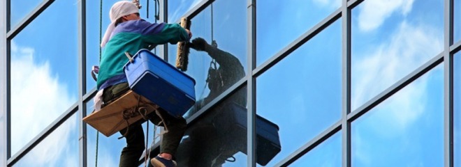 Если вам нужно помыть окна на высоте снаружи здания, то обращайтесь к промышленным альпинистам.