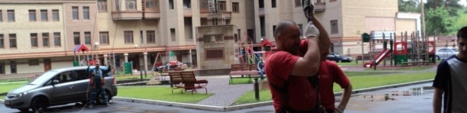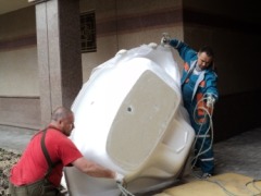 Подъем ванны на двенадцатый этаж методом полиспаста промышленными альпинистами. Подъем был осуществлен в мае 2012 года в Москве.