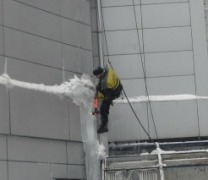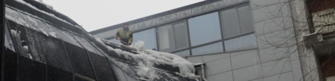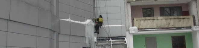 Очистка кровли от снега производилась в начале 2013 года бригадой альпинистов в здании Музторга в Москве. Справедливости ради надо сказать, что вместе с очисткой кровли была произведена и очистка фасада от наледи и сосулек. Из-за архитектурных особенностей здания очистка производилась с предельной осторожностью.