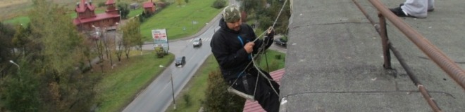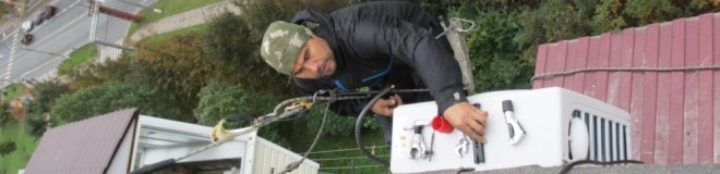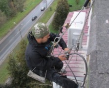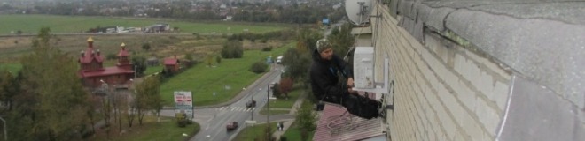 Установка внешнего блока кондиционера производилась 23 сентября 2013 года в Домодедово. Промышленные альпинисты, как обычно выполняют наружные работы, а внутренней установкой кондиционера занимаются монтажники-специалисты по кондиционерам.