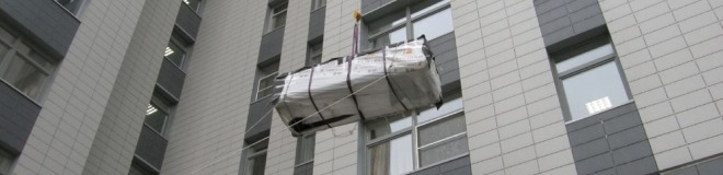 Одним из направлений нашей компании является подъем малогабаритных грузов. Подъем грузов на этаж проводится по внешней стене здания и через окно в квартиру или офис. Для этого применяется метод промышленного альпинизма.