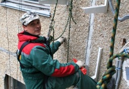 - Данный вид работ поможет решить самые нестандартные проблемы. Трудный подъем предметов мебели, сложные фасадные работы, монтаж инженерных сетей, покраска заводской трубы, - все эти работы для наших специалистов легко выполнимы. Кроме того, альпинист выполняет работку только там, где это необходимо. Он легко добирается до нужной части фасада, не повреждая его.