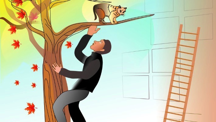 Если вы решили спасать кота самостоятельно, то будьте осторожны. Лучше всего приставить к дереву лестницу и аккуратно снять его в одеяло или плед, чем хватить руками за шкирку или спину. Если же вы будете карабкаться по стволу, то лучше захватить с собой рюкзак или сумку из ткани, куда можно будет положить животное. В противном случае удерживать вырывающегося кота и одновременно спускаться вниз будет сложно. Не стоит лезть туда, где ветки совсем тонкие – лучше приманить кота и заставить его спуститься чуть ниже. Те, кто занимается промышленным альпинизмом, умудряются брать с собой на высоту тяжелое оборудование и это не мешает их спуску, так что попытайтесь также правильно подготовиться к подъему.