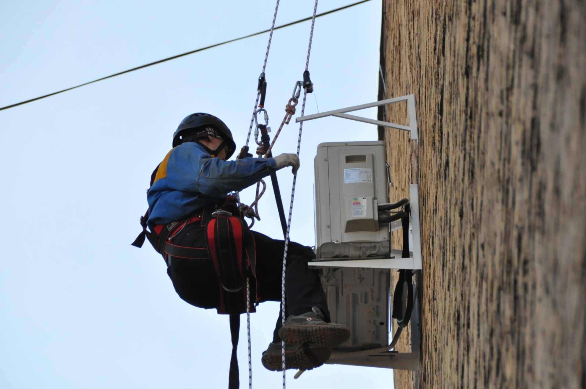 Монтаж кондиционеров и стеклопакетов на высоте альпинистами