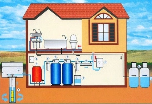 - Монтаж системы, которая подает воду из скважины в помещение;