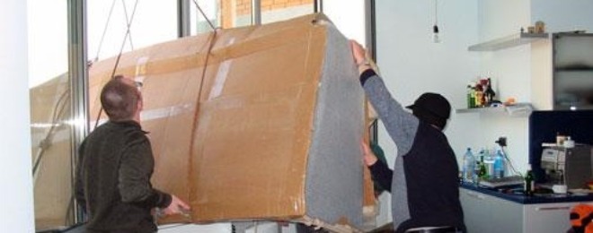 Для подъема негабаритных холодильников через окно обращайтесь к промышленным альпинистам.